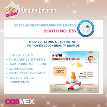 For testing services- skincare, cosmetics, sunscreen testing, budget friendly clinical trials, hair care testing; For product consultancy and R&D; For patented cosmetics ingredients, and certification